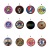 グレイトフル・デッドの象徴的なアートワーク、ロゴ、サイケデリックなイメージが描かれた、メタルボタン