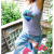 ブルーのパンツとパープルのキャミソールの優しい色がとっても合います。